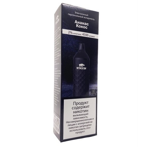 Купить электронную сигарету Attacker 4500 затяжек Ананас Кокос с зарядкой в Москве вы можете в сети наших розничных магазинов или оформив заказ на нашем сайте