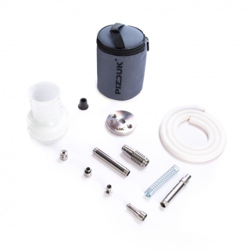 Кальян Pizduk Hookah новинка в сегменте мини кальянов. Кальяны Pizduk производятся в России. Колба выполнена из закалённого стекла, шахта сделана из нержавеющей стали и имеет высоту около 12см. В комплекте также идёт мундштук из нержавеющей стали и шланг. Кальян Pizduk поставляется в удобной компактной сумке в которую помещается кальян в разобранном виде и его удобно взять куда угодно.