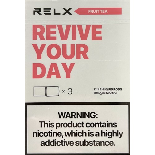 Картриджи RELX Pod Fruit Tea (Персик) со вкусом Персикового Чая. Поды Relx поставляются в фирменных пачках по 3 штуки. В данном вкусе содержание никотина составляет 18 мг