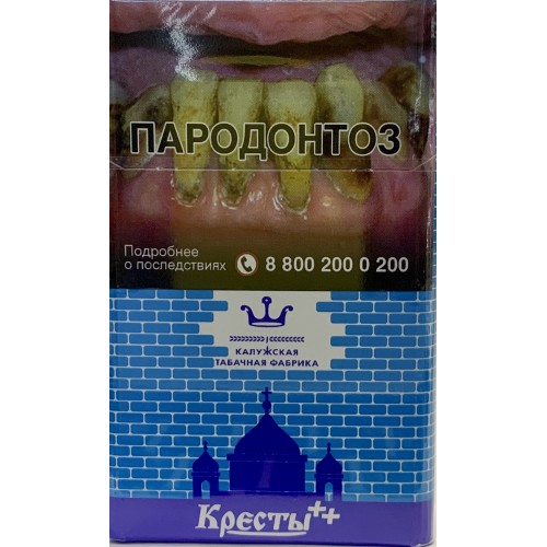 Сигареты Кресты Синие производятся в России на Калужской табачной фабрике. Сигареты выпускаются в формате Кинг Сайз. Содержание смолы 7 мг, никотин 0,5 мг.