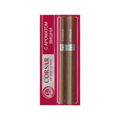Сигареты Корсар Вишня (Corsar of the Queen Cherry) с фильтром в блистере по 2 штуки. Произведены из отборных табачных листьев Вирджинии и Берлей и обёрнуты в восстановленный табачный лист. Сигариллы Корсар Вишня обладают ярким вкусом спелой вишни.